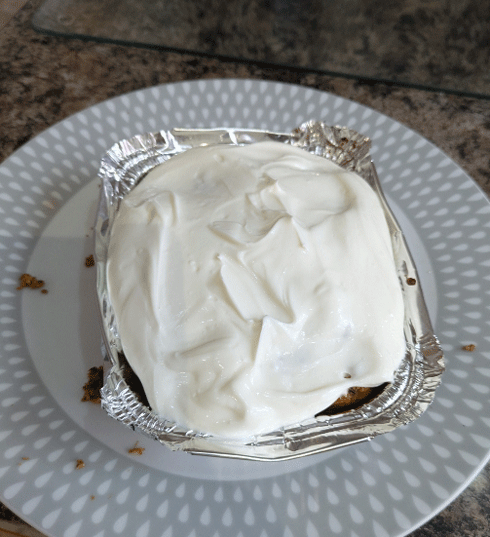 The ‘icing’ is the easiest I could find! Low fat Philadelphia or Laughing Cow soft cheeses, mixed with Canderel sweetener (I put in about a tbsp for a full pack of Philadelphia but it is a personal taste how much is used).