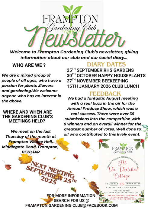 Venue: St Michael’s Hall Frampton West PE20 1QZ starting at &.30pm