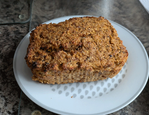 I made it again with quince. And I found a way of ‘icing’ one of the previous ones. This one I made with the same amount of oats, ‘one’ carrot, baking powder, 2 tsp mixed spice, 4 tbsp mixed, dried fruit. Then I put the mix into a bowl, and added the quince to the mixer. Cutting it this way, rather than grating, means that there is no need for milk, which the recipe I am basing this on grates the apple and carrot and then needs added milk.